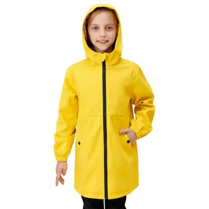 Girls Light Raincoat Kids Waterproof Long Rain Jacket Hooded Spring Fall Lined Windbreaker