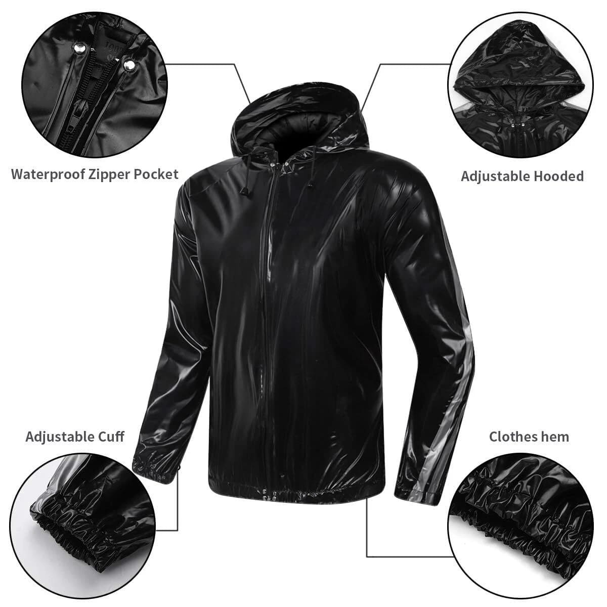 sauna suit performs well in windproof and waterproof, maintains body temperature, accelerates burning calories, and can be worn in all seasons.